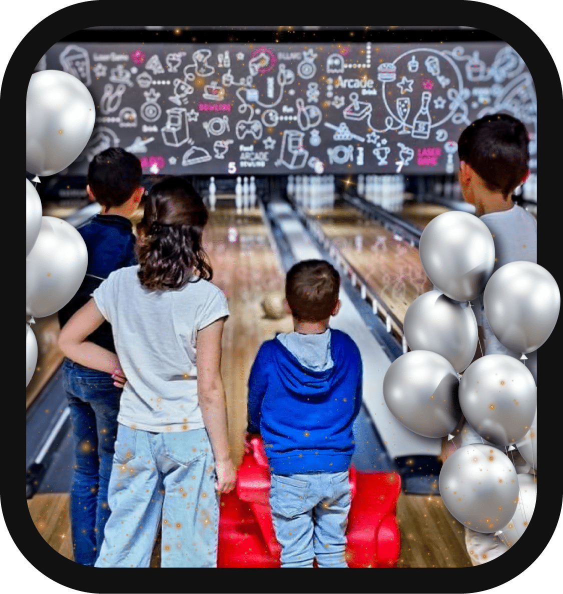 Venez jouer sur une de nos 24 pistes de bowling, toutes équipées pour les enfants